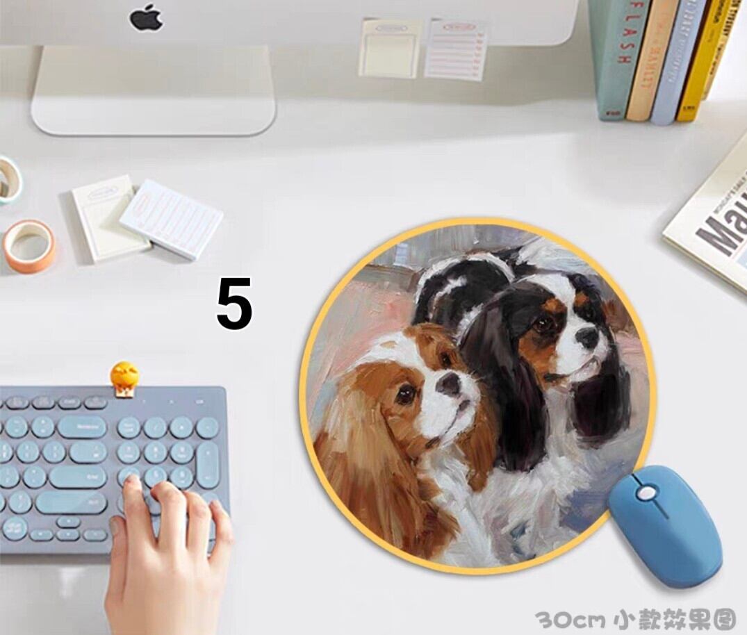 キャバリア.ブレンハイムとトライが描かれたマウスパッド。