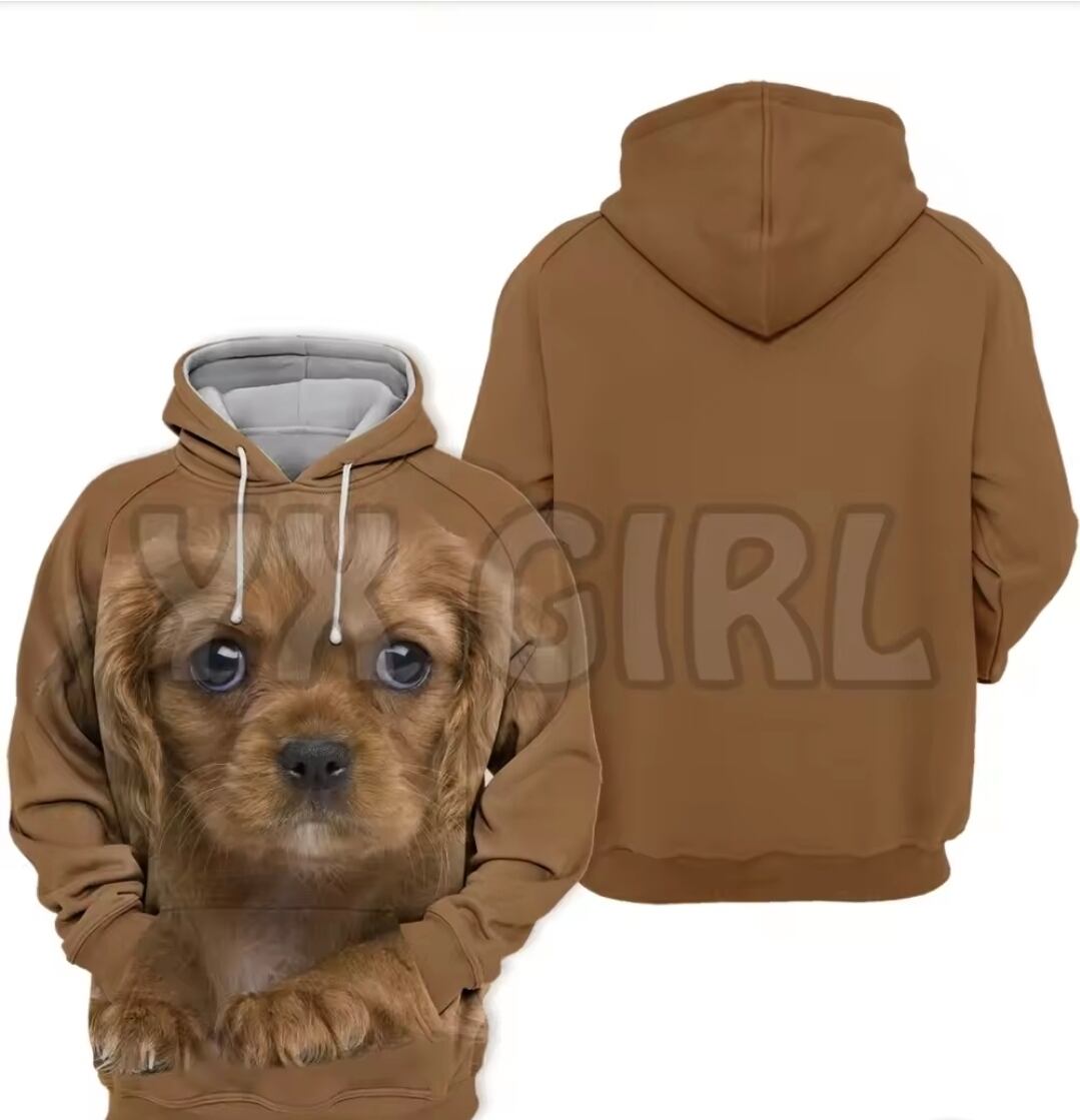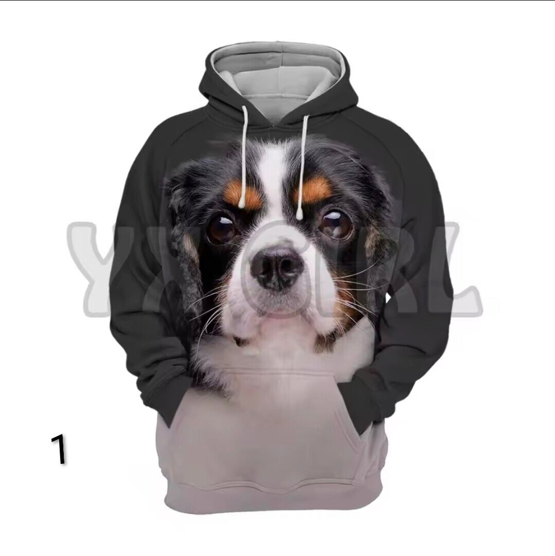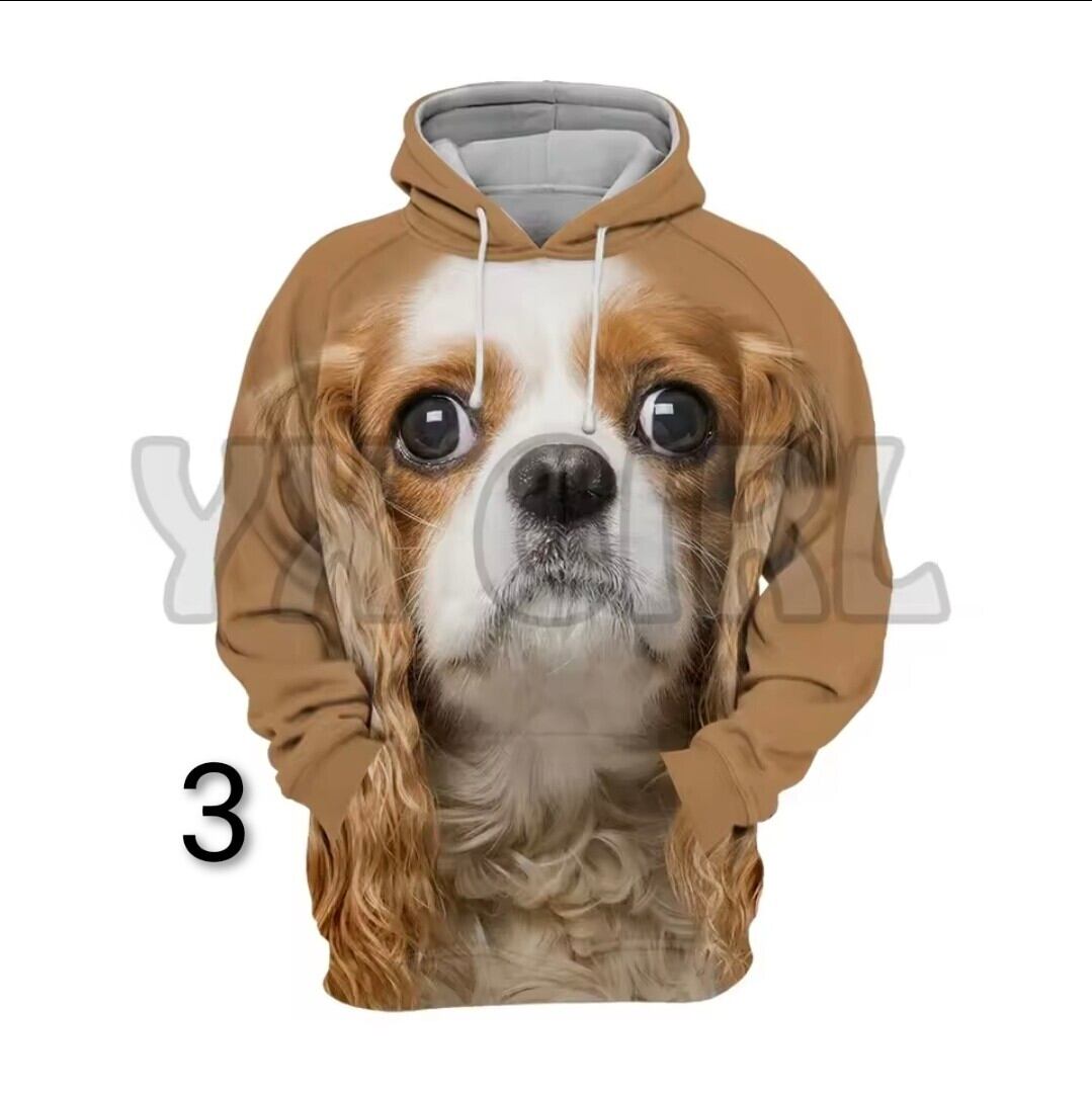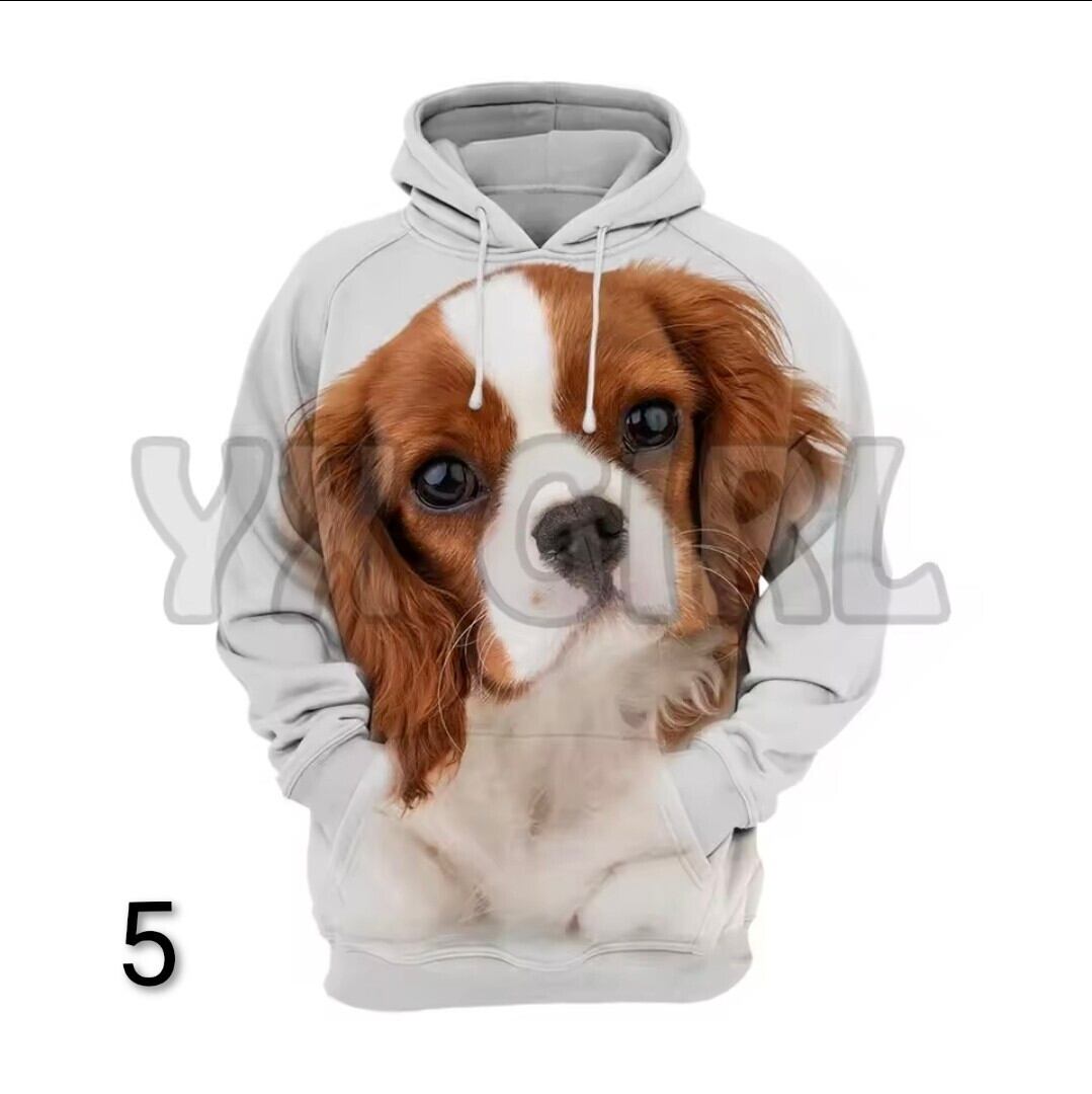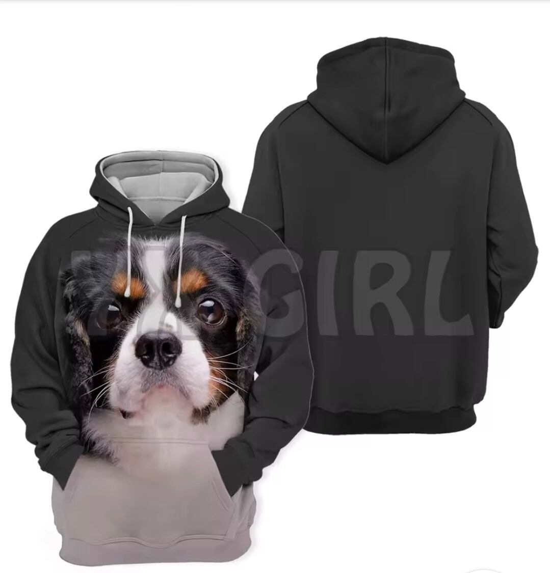 キャバリアのお顔が大きく描かれたパーカーです!パーカー全体に大きくお顔をプリントした大胆なデザインです。