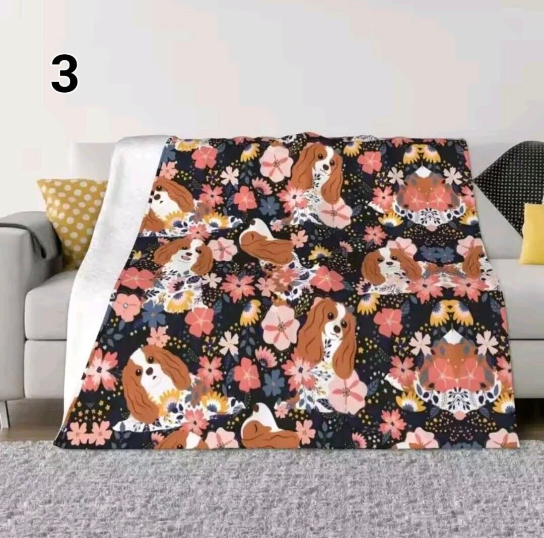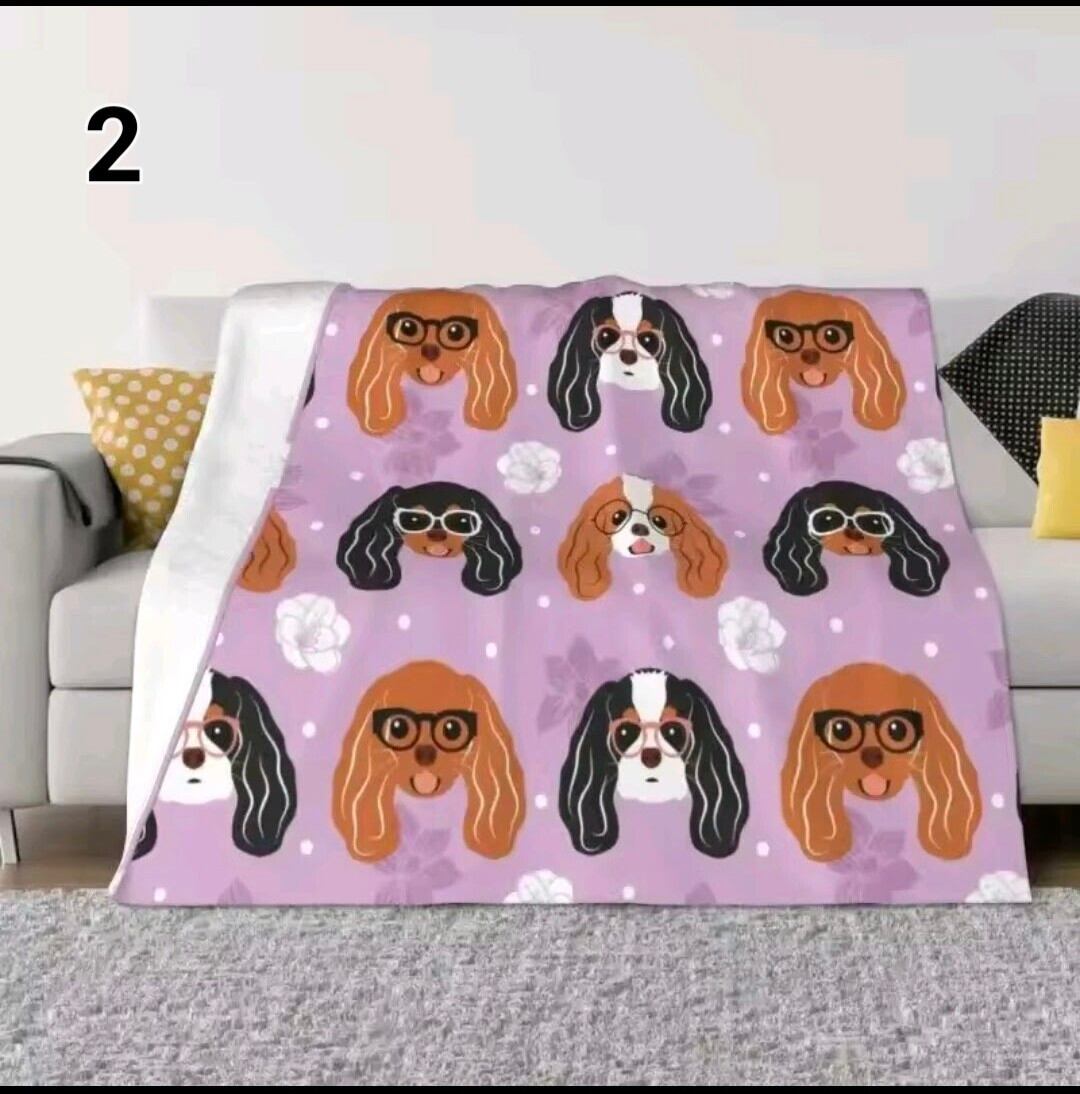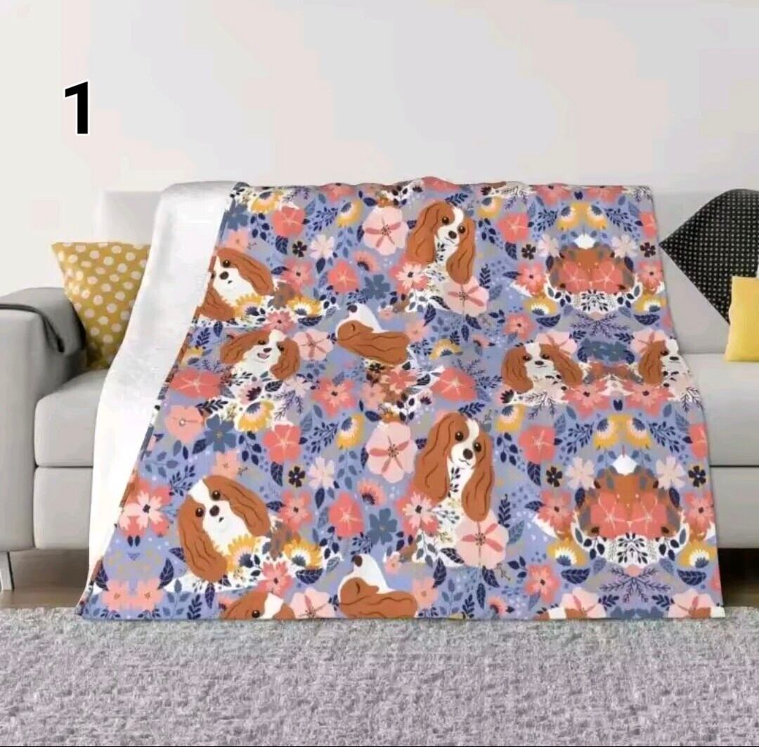 キャバリアモチーフの可愛いブランケット。70cm×90cm膝掛けサイズです❗