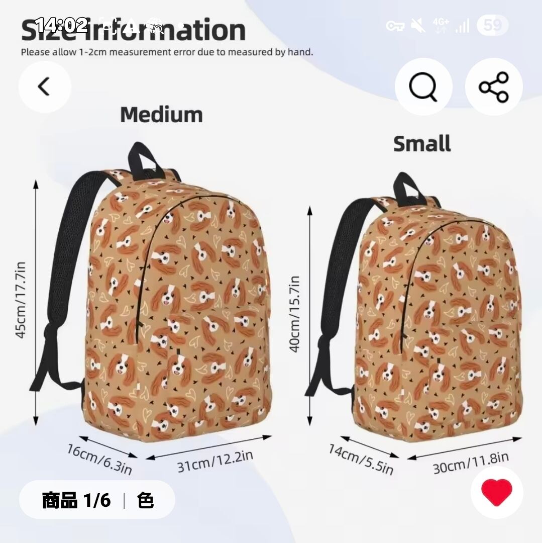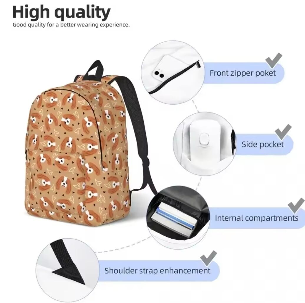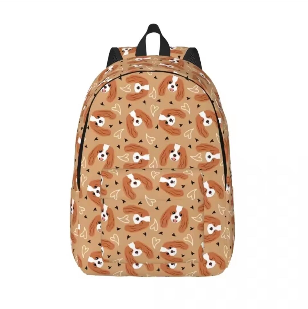 ブラウン地にブレンハイムのキャバちゃんのお顔が描かれた可愛いリュックサックです!