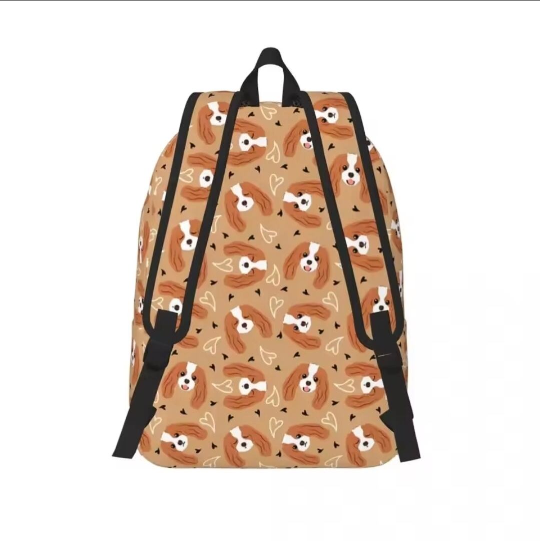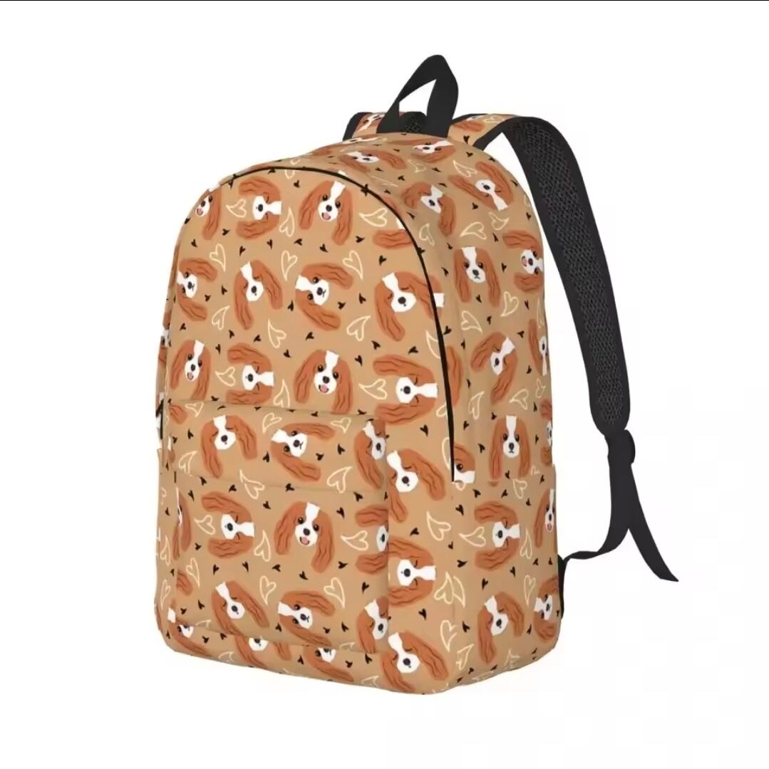 ブラウン地にブレンハイムのキャバちゃんのお顔が描かれた可愛いリュックサックです!